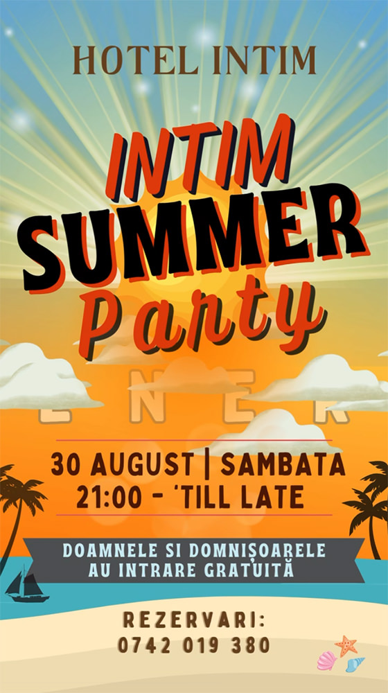 Sâmbătă, 30 August 2025, începând cu ora 21:00, la Intim Summer Lounge din Rădăuți va avea loc Intim Summer Party.