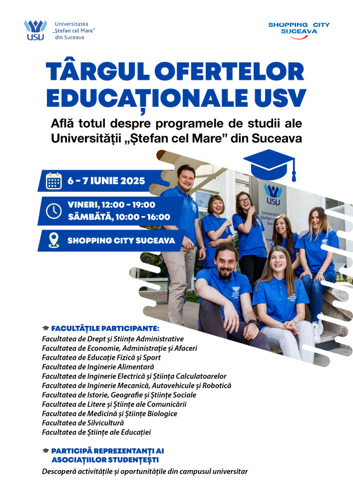 În perioada 6-7 Iunie 2025, la Shopping City Suceava va avea loc Târgul Ofertelor Educaționale.